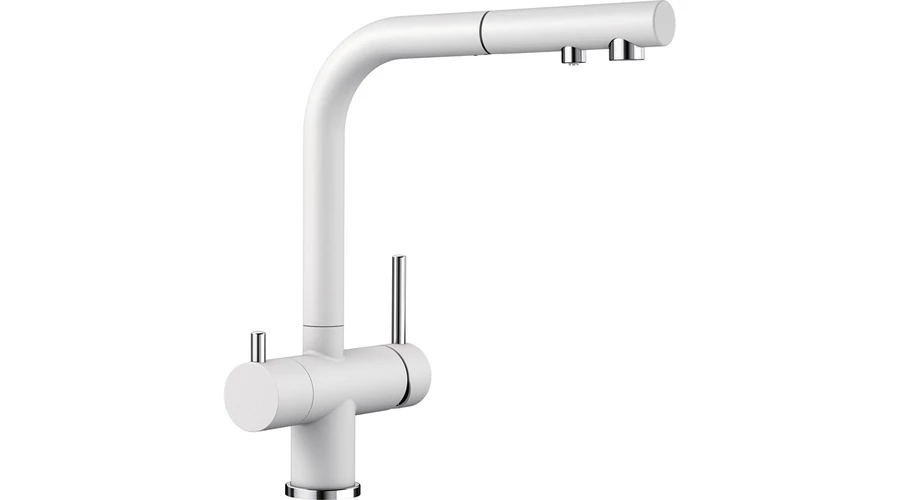 - Kényelmes 3 az 1-ben csaptelep: szűrt és szűretlen víz a kihúzható kifolyón keresztül