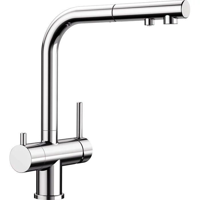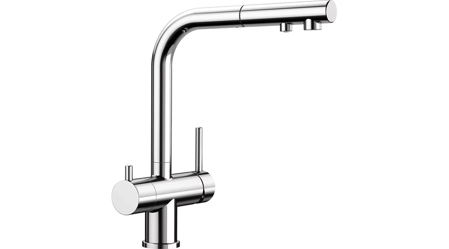 - Kényelmes 3 az 1-ben csaptelep: szűrt és szűretlen víz a kihúzható kifolyón keresztül