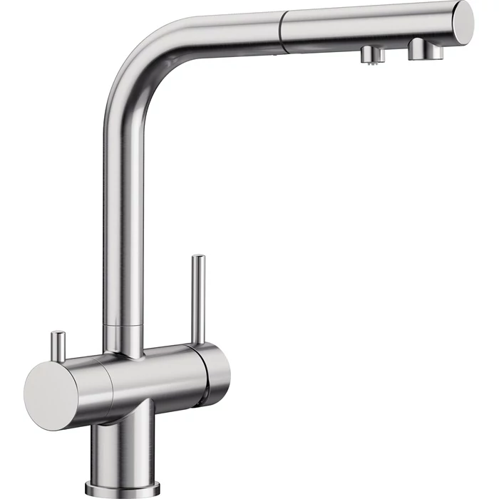 - Kényelmes 3 az 1-ben csaptelep: szűrt és szűretlen víz a kihúzható kifolyón keresztül