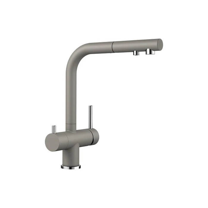 • Kényelmes 3 az 1-ben csaptelep: szűrt és szűretlen víz a kihúzható kifolyón keresztül