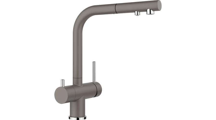 - Kényelmes 3 az 1-ben csaptelep: szűrt és szűretlen víz a kihúzható kifolyón keresztül