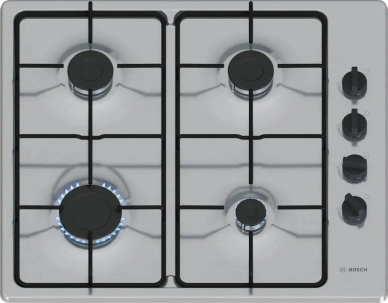 Gázfőzőlap - nemesacél felület - Serie2 - 60cm - 4 gázégő - elektromos szikragyújtás - automatikus gázelzárás - zománcozott edénytartó rács - könnyen tisztítható