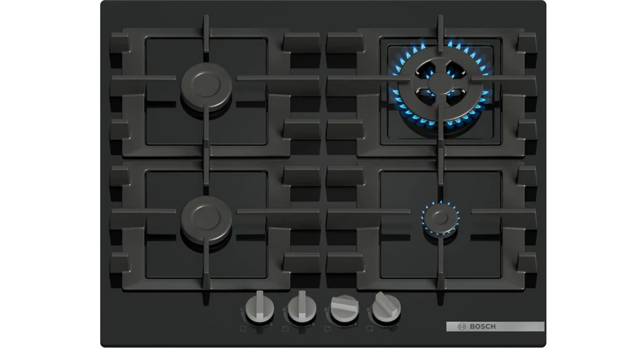 Bosch POH6B6K30 Gázfőzőlap - fekete edzett üveglap - Serie2 - 60cm - 4 gázégő - WOK