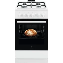 | Komfort | 50x60; 4 főzőzóna; fehér; Termosztát; 55 l; sütővilágítás; grill(fix); hangjelzés; percszámlálás; szikragyújtás a sütőben is, (tető nélk.), új design |