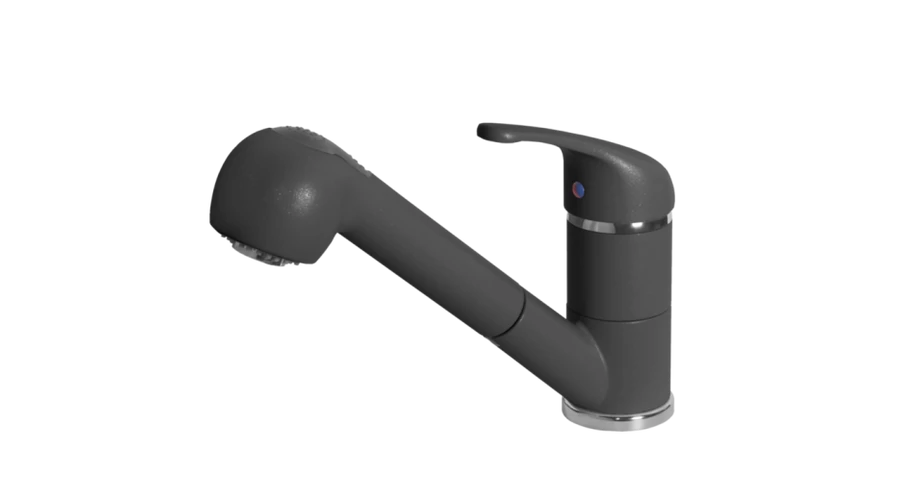 Egykaros csaptelep forgatható kifolyócsővel, kerámiabetéttel, kihúzható zuhanyfejjel és kétféle vízsugárral (zuhany / normál).