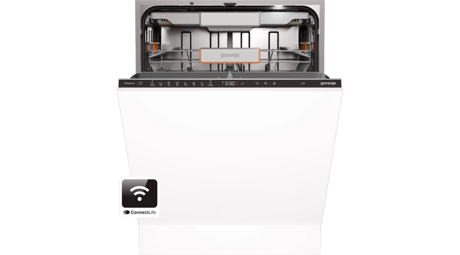 TELJESEN INTEGRÁLT 60CM MOSOGATÓGÉP 16 teríték – 3 kosár, "A" energiaosztály (55kWh/100 ciklus), INVERTER motor, 8 program (Automata, Intenzív, ECO, Quick 20', Hygiene, CristalGlass - Üveg, 1 órás, NightWash éjszakai), TouchControl vezérlés, 7 különböző mosási hőmérsékletek (70,65,55,45-65,40 °C), Késletetés 1-24óra LED kijelző, TotlaDry szárítás automata ajtónyitással, Rozsdamentes acél kamra, 3 vízszóró kar - 5 vízsugár, Padlófény, MultiClack továbbfejlesztett kosár narancs műanyag borospohár tartó, késtrató betétekkel állítható magassággal, állítható magasságú felső kosár, Féltöltet opció, Teljes AquaStop rendszer, SelfCleaning - Öntisztítás, Vízfogyasztás: 9,6 liter, Zajszint: 43 dB(A)
