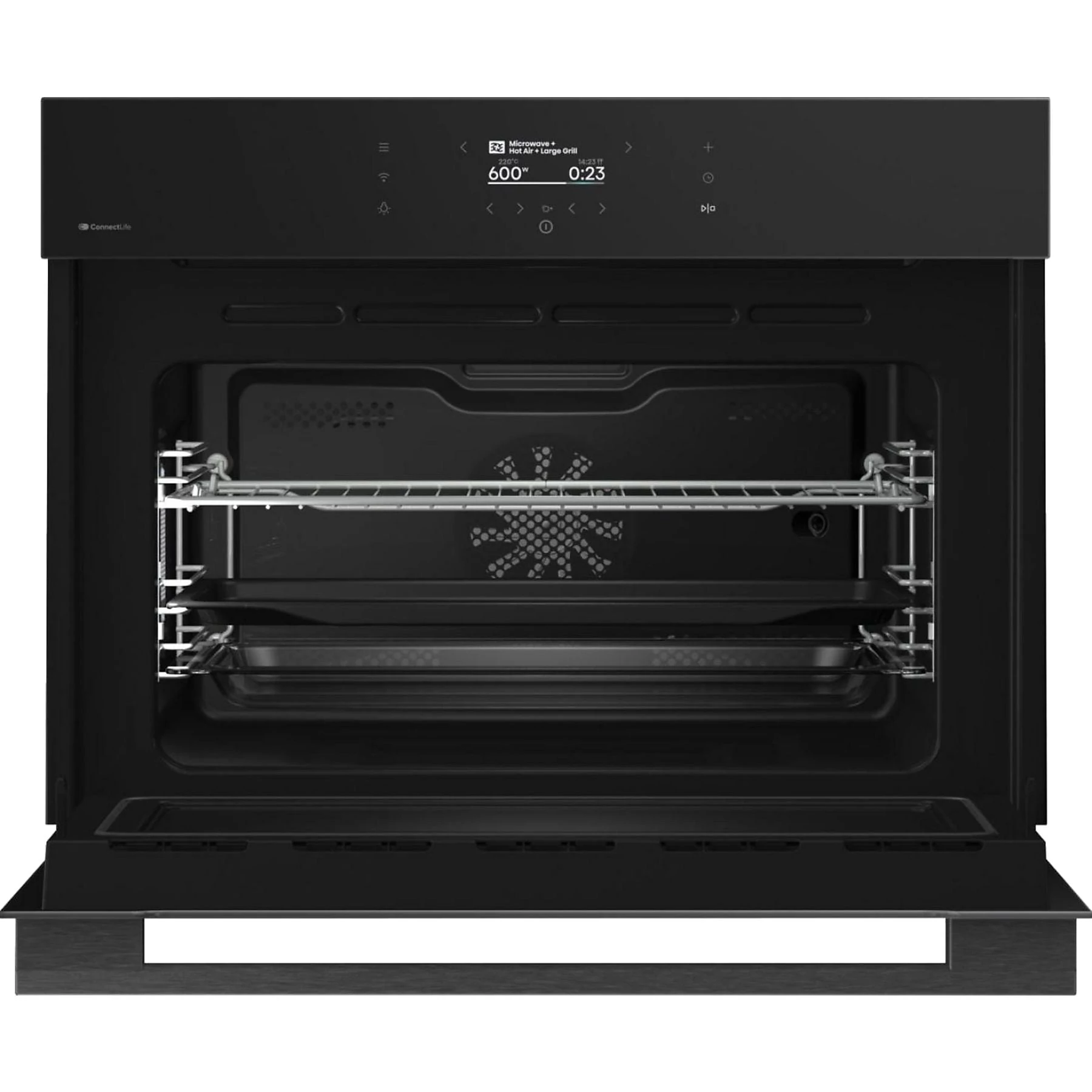 KOMPAKT MIKRO + SÜTŐ KOMBI Multifunkciós sütő és mikrohullámú sütő kombi, 50 liter, Méretek: 455/595/546mmm, 14 funkció , Pizza, AirFry , Sabbath mód, StepBake , FrozenBake, TFT színes kijelző, Inverter , teljesen fekete üveg ajtó, WIFI - okos otthon: ConnectLife alkalmazás