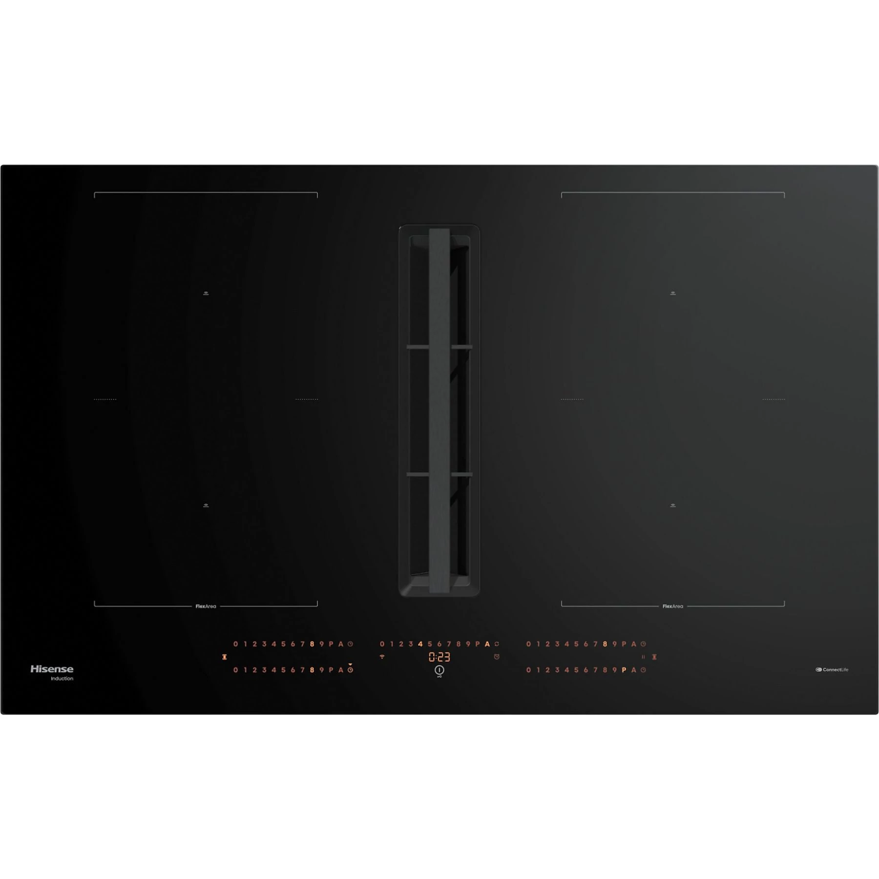 Bépíthető INDUKCIÓS főzőlap ELSZÍVÓVAL - 80cm, 4x Slider vezérlés, AREA FLEX - (4db) Boil-Forralás, Tojás főzés, Melt olvasztás, Warm melegentartás, Grill, FRY-Sütés, Automatikus edényfelismerés, Stop&Go, "POWER BOOST" teljesítmény: 149-458m3/h, BOOST: 611m3/h, A+++ ,WIFI - ConnectLife