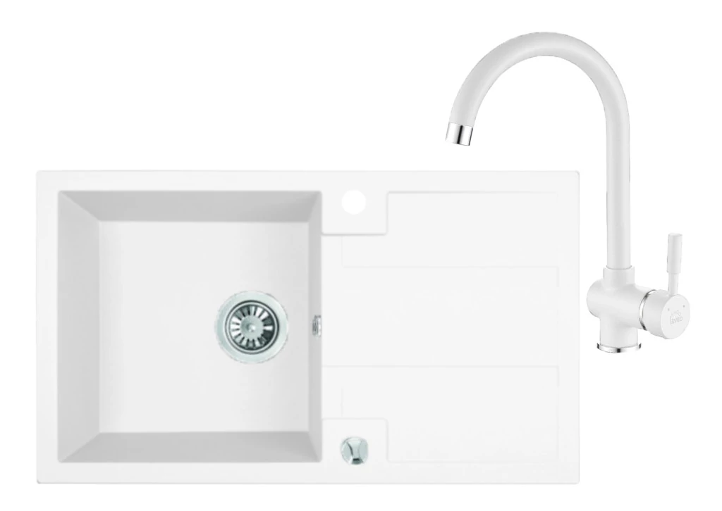 Laveo IBIZA fehér egymedencés mosogató helytakarékos szifonnal