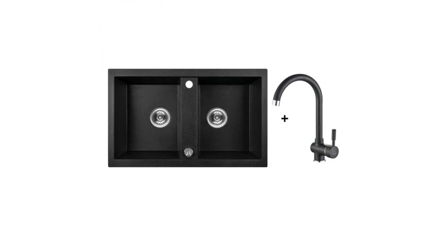 | Komfort | MATT fekete Gránit mosogató: kétmedencés, Szín: MATT fekete, MATT Fekete álló csapteleppel, |