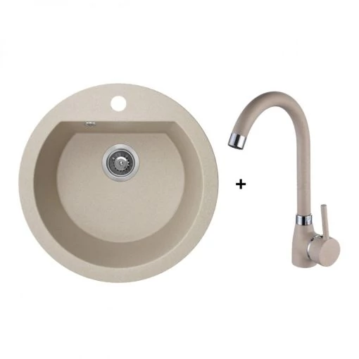 | Komfort | bézs Gránit mosogató: egykör, Szín: bézs, Bézs álló csappal |