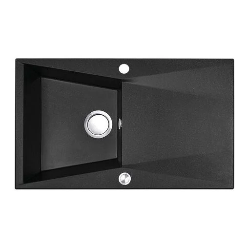 Laveo RINA csepptálcás szemcsés fekete mosogató, automata dugókiemelős, helytakarékos szifonnal