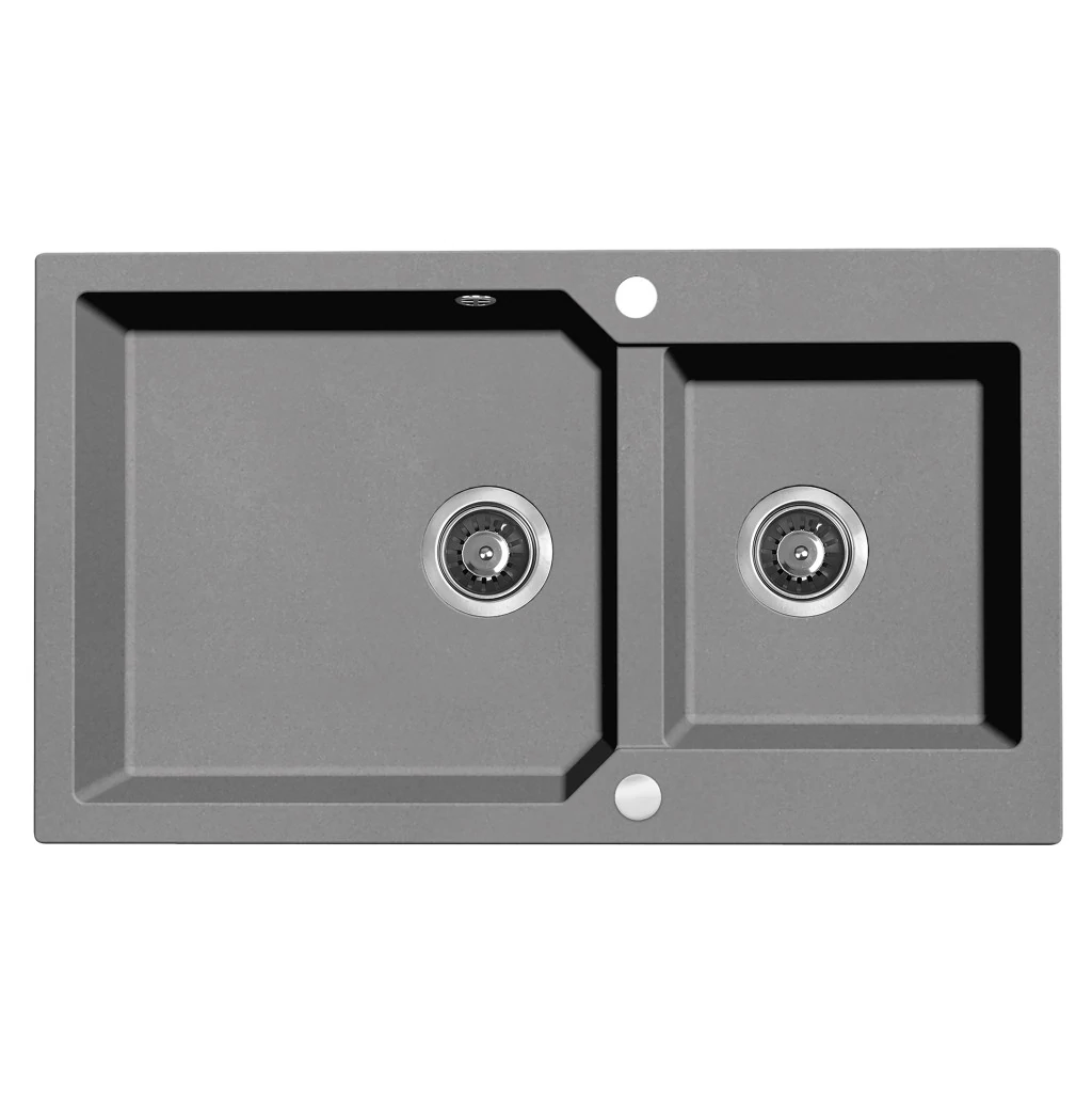 A Milos szürke mosogató tökéletes megoldás azok számára, akik a konyhában az eleganciát és a funkcionalitást egyaránt értékelik. A dupla medencés Milos modellt a maximális helykihasználás szem előtt tartásával tervezték, így tökéletesen illeszkedik a világos és hangulatos belső terekbe, miközben modern alternatívát kínál a hagyományos sötét mosogatókkal szemben. A nagyobb medence tökéletes nagy edények, és sütőlapok mosogatására, míg a kisebb medence ideális gyümölcsök és zöldségek öblítésére. A Milos tartós gránitból készült mosogató ami kivételesen ellenállóvá teszi a magas hőmérsékletnek, a karcolásoknak és a foltoknak. Modern kialakítása és magas funkcionalitása kiváló választássá teszi bármely modern konyhába. További előnye az automatikus lefolyó, amely jelentősen leegyszerűsíti a mindennapi használatot. A helytakarékos szifon lehetővé teszi a mosogató alatti tér jobb kihasználását, lehetővé téve a hulladék- és mosószertartályok hatékony rendszerezését. A Milos mosogató megfordítható kialakítású, így rugalmasan beszerelhető 90 cm széles szekrényekbe, tökéletesen illeszkedve a konyha elrendezéséhez. A Milos mosogató kiválasztásával egy masszív, praktikus és esztétikus konyhai kiegészítőt kap, amely ellenáll a mindennapi kihívásoknak, miközben évekig biztosítja a kényelmet és a praktikumot. Kiváló választás azok számára, akik a modern dizájnt a megbízható funkcionalitással szeretnék ötvözni.