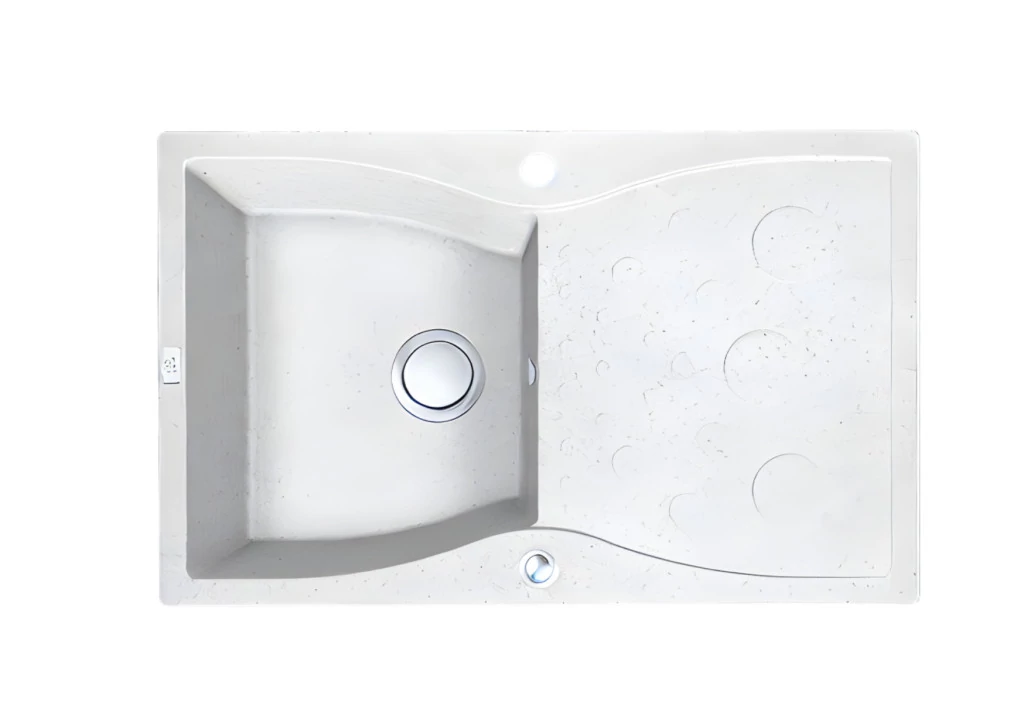 A Molokin fehér gránit mosogató a meleg színek és a funkcionális dizájn egyedülálló keveréke , amely mind a klasszikus, mind a modern belső terekhez illik. Lekerekített élekkel ellátott téglalap alakú formája rusztikus, skandináv, elbűvölő vagy bohém stílusú konyhákhoz illik . A fehér szín otthonosságot , természetességet és könnyedséget kölcsönöz a dizájnnak . Megfordítható kialakításának köszönhetően a Molokin mosogató a csepegtetővel balra vagy jobbra is beszerelhető , így könnyen alkalmazkodik a bútorok elrendezéséhez és igényeihez. Ezt a megoldást mind a tervezők, mind a funkcionalitást és a tervezési szabadságot kereső felhasználók értékelni fogják . A csepegtetőn lévő különböző méretű körök mintázata nem csupán dekoratív – hanem egy praktikus megoldás , amely elősegíti a hatékony vízelvezetést . A ráhelyezett nedves edények nem állnak meg vízben – az egyedi szerkezetnek köszönhetően a folyadék gyorsan lefolyik, így a felület száraz és tiszta marad . Ez nagyobb higiéniát és kényelmet garantál a mindennapi használat során. A tágas mosogató lehetővé teszi a nagyobb edények – fazekak, serpenyők és sütőlapok – kényelmes elmosogatását. Könnyebbé és gyorsabbá teszi a mindennapi feladatokat , és segít a konyha hatékonyabb működésében. A kiváló minőségű gránit kompozitból készült mosogató ellenáll a karcolásoknak, a magas hőmérsékletnek, az elszíneződésnek és a hősokknak . A fehér árnyalat évekig megőrzi színét, még intenzív használat esetén is. A szett tartalmaz egy modern, helytakarékos szifont , amely segít helyet megtakarítani a mosogató alatti szekrényben . Lehetővé teszi a tér jobb rendszerezését, különösen a kis konyhákban , ahol minden centiméter számít. Praktikus, tartós és elegáns, így bármelyik konyha szívévé válhat, ötvözve a stílust és a kényelmet .