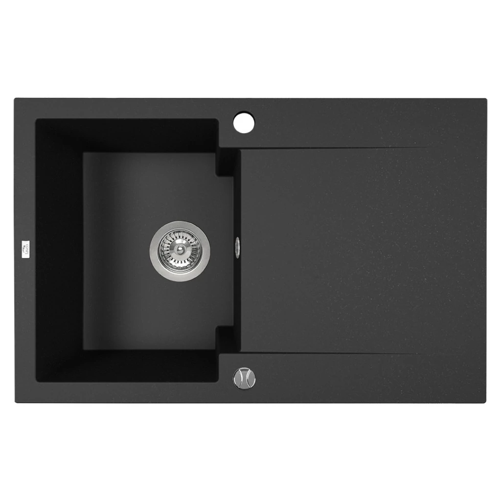 A PICO fekete gránit mosogató teljes csöpögtetővel tökéletes megoldás modern konyhákba, ötvözve a funkcionalitást az elegáns dizájnnal. 40 cm széles szekrényekhez tervezett mosogató kivételes gyártási minőséget és tartósságot kínál. Saját gyárainkban gyártva évekig tartó A PICO mosogató teljes csepegtetővel egy funkcionális megoldás, amely lehetővé teszi az elmosogatott edények és egyéb konyhai eszközök kényelmes tárolását. A nagy csepegtetőfelület további munkaterületet biztosít, ami rendkívül értékes a kis konyhákban, ahol minden centiméter számít. A kiváló minőségű fekete gránitból készült PICO mosogató ellenáll a magas hőmérsékletnek, a karcolásoknak és a foltoknak. Ez az anyag tartósságot és könnyű tisztíthatóságot biztosít, így a mosogató hosszú éveken át megőrzi elegáns megjelenését. A PICO mosogató manuális dugóval van felszerelve, amely lehetővé teszi a lefolyó egyszerű, kéz nélküli nyitását és zárását. A helytakarékos szifon segít helyet megtakarítani a mosogató alatt, lehetővé téve a tisztítószerek, a szemeteskosár és egyéb konyhai kiegészítők kényelmes tárolását. A PICO fekete gránit mosogató teljes lefolyóval nagyszerű választás korlátozott hellyel rendelkező konyhákba, például stúdiólakásokba, bérlakásokba és kis konyhákba. Kompakt méretének és praktikus tulajdonságainak köszönhetően tökéletes a mindennapi használatra, kényelmet és funkcionalitást kínálva. A PICO fekete gránit mosogató teljes csöpögtetővel ötvözi az eleganciát, a tartósságot és a funkcionalitást. Saját gyárainkban készül, így megbízhatóságot és hosszú élettartamot biztosít. A sérülésekkel, foltokkal és magas hőmérséklettel szembeni magas ellenállásának köszönhetően a PICO mosogató ideális választás kis konyhákba, kényelmet, esztétikát és könnyű kezelhetőséget kínálva.