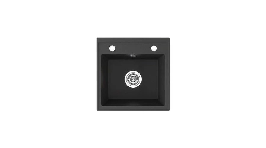 Kompozit mosogató Kialakítás: 1 medence Méret: 440x440x173 mm Szekrény méret: 500 mm Felület: fekete Helytakarékos szifonnal és dugókiemelővel