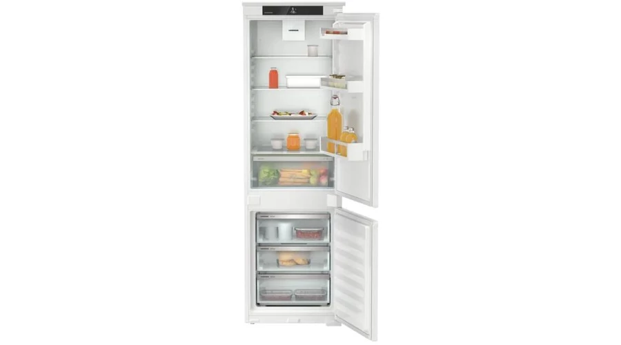 Fagyasztótér hasznos űrtartalom 70liter Hűtőtér hasznos űrtartalom 183liter Jegesedés mentes kivitel Igen Magasság 177cm Komfort Beépíthető hűtő-fagyasztó kombináció EasyFresh és NoFrost funkciókkal, 253 l, szuper csendes 34 dB(A)