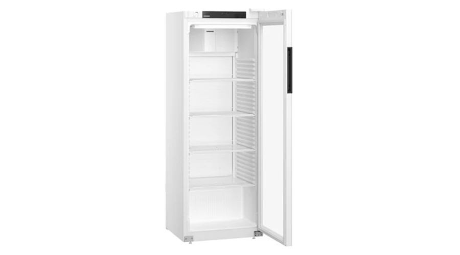 bruttó 347 iteres hűtőszekrény; ventilációs hűtési rendszer; zárható HardLine hőszigetelt üveg ajtó (ESG biztonsági üveg), műanyag profil; kapcsolható felső LED világítás; hűtési tartomány: +2/+9°C között; mechanikus vezérlés; analóg hőmérsékletkijelzés; kívül fehér színű porszórt acél burkolat; egy darabból készült, hőformázott polisztirol (környezetbarát) belső burkolat; 4 db fehér színű védőbevonatos megerősített acél rácspolc, STOP funkcióval és leesésgátlóval; a polcok magassága 35 mm-ként állítható; polconkénti terhelhetőség: max. 45 kg; kapacitás: 414 db 0,33l aludoboz, 207 db 0,5l PET, 102 db 1l PET, 80 db 1,5l PET palack (facing: 7); az ajtó önműködően csukódik (90°-tól nyitva marad) és nyitásának iránya megfordítható; higiénikus, cserélhető ajtószigetelés; ajtóprofilba süllyesztett fogantyú; automatikus leolvasztás; 1 pár első vízszintező talp; FCKW-FKW mentes hűtőközeg (R 600a) és falszigetelés (50 mm); külső hőmérséklet: +10/+40°C között - CC2 klímaosztály; éves energiafelhasználás: 538,20 kWh; C energiagatékonysági osztály