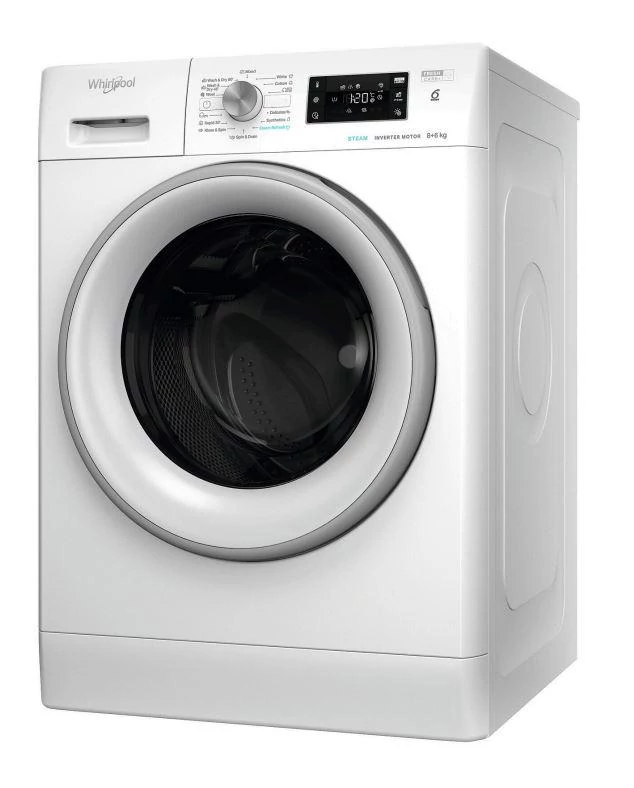 Mosó-szárítógép gõzfunkcióval, "A-20%" energiaosztály, max. 1400 fordulat/perc, 8 kg (pamut) mosható illetve 6 kg (pamut) szárítható ruhamennyiség, fehér dobajtó ezüst kerettel, 6. Érzék szenzortechnológia, gõzöléses ruhafrissítés program, 3 állású programtábla: csak mosás; csak szárítás; mosás és szárítás; FreshCare+ opció, elektronikus vezérlés, nagy digitális kijelzõ, csendes mûködésû inverter motor, választható hõmérséklet és centrifuga szint, SoftMove dobmozgás, állítható idejû indításkésleltetés, szárítási idõ beállítás, Programok: Eco 40-60, pamut, szintetikus, gyapjú, gyors 30', vegyes, fehér, 20°C mosás, kímélõ program, felfrissítés gõzzel, mosás + szárítás (45 és 90 perces), 84x59.5x54cm