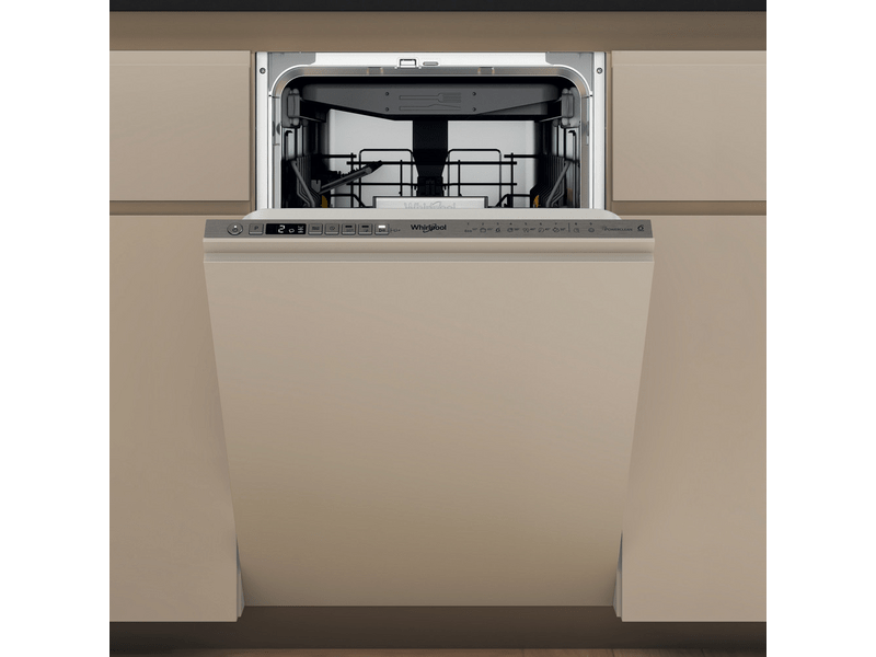 Teljesen integrálható keskeny mosogatógép, "A" energiaosztály, 10 teríték, PowerClean, 8,5 l vízfogyasztás, 3. evőeszköz fiók, 6. Érzék, LOF Zajszint: 42 dBA, 82x44,8x55,5 cm