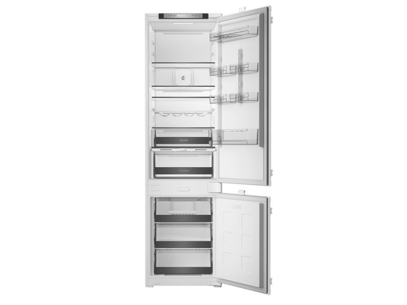 | Komfort | Ez a modern, beépíthető hűtő-fagyasztó kombináció ideális választás azok számára, akik nagy kapacitású, energiatakarékos és intelligens megoldást keresnek konyhájukba. A 300 literes össztérfogat – amely 224 liter hűtőteret és 76 liter fagyasztóteret foglal magában – bőséges helyet biztosít a mindennapi élelmiszerek rendszerezett tárolásához. A C energiaosztály és az évi mindössze 153 kWh fogyasztás hatékony működést garantál, míg a mindössze 35 dBA zajszint rendkívül csendes üzemelést biztosít, így a készülék szinte észrevétlenül működik a háttérben. Az inverter kompresszor nemcsak halkabb működést, hanem hosszabb élettartamot is kínál. |