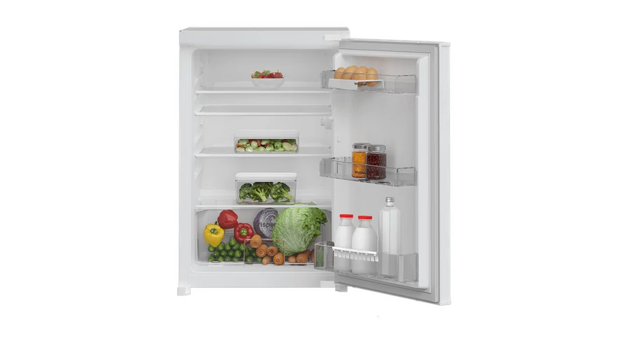 126 liter hasznos térfogat, E energiaosztály, üvegpolcok, 4 fokozatú termosztát, 150 kWh/év, 38 dB zajszint, beépítési méretek: 85x60x55 cm